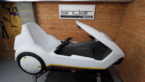 I was looking around for a project with a mechanical element, as I usually repair old electronics. Walking through London one day I came across a beautifully restored DeLorean – complete with all the essential ‘Back to the Future’ conversions – Mr. Fusion and a flux capacitor. Although a similar project had great appeal, DeLoreans cost about £30,000 and I know nothing about cars. So looking around for a more manageable project, I decided a Sinclair C5 fitted the bill. Like the DeLorean, they were produced in Britain by a short lived company. And like the film ‘Back to the Future’, the C5 came into being in 1985. And of course, both have futuristic styling.